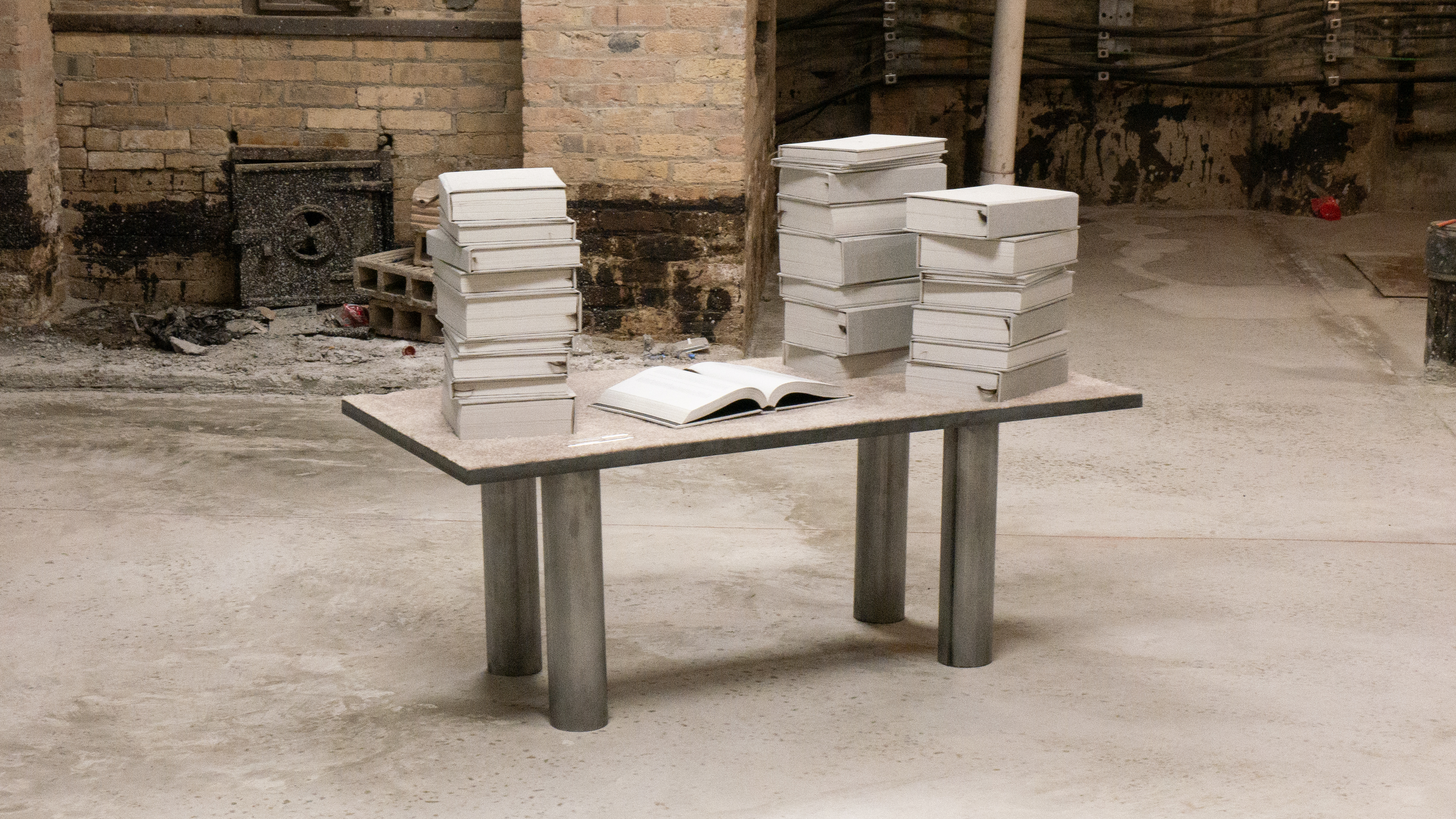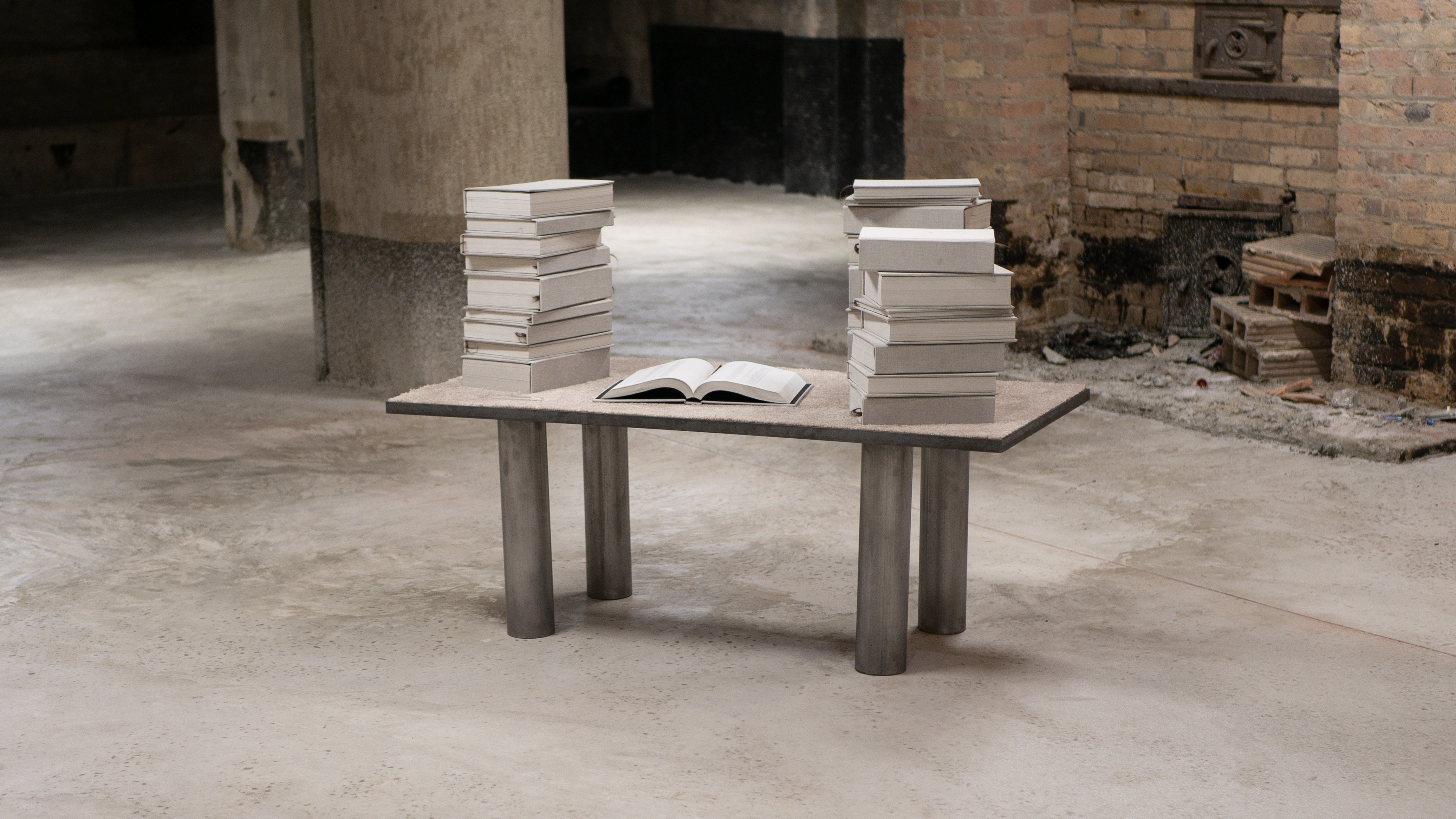 25 hand-bound chromosome volumes, human hair, steel, carpet, glass