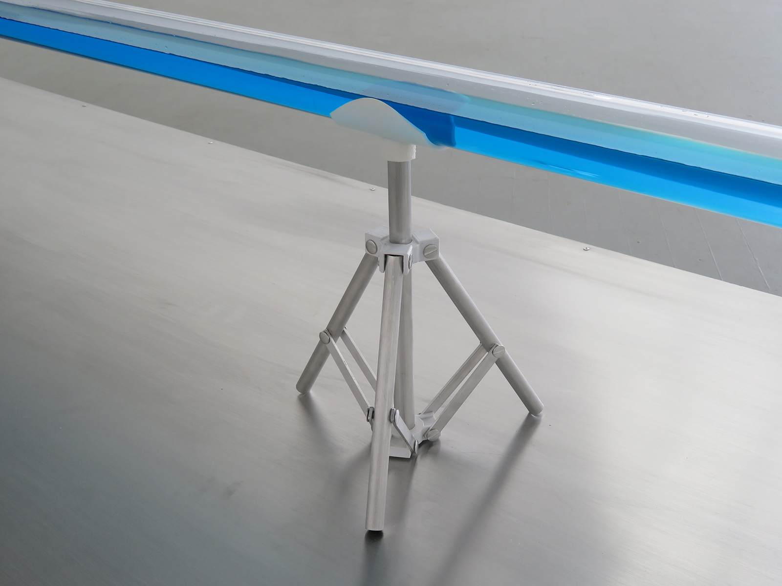 aluminum, acrylic, apoxy, 3D printed hardware, water, dye, plastic, rubber, cave dust and paint